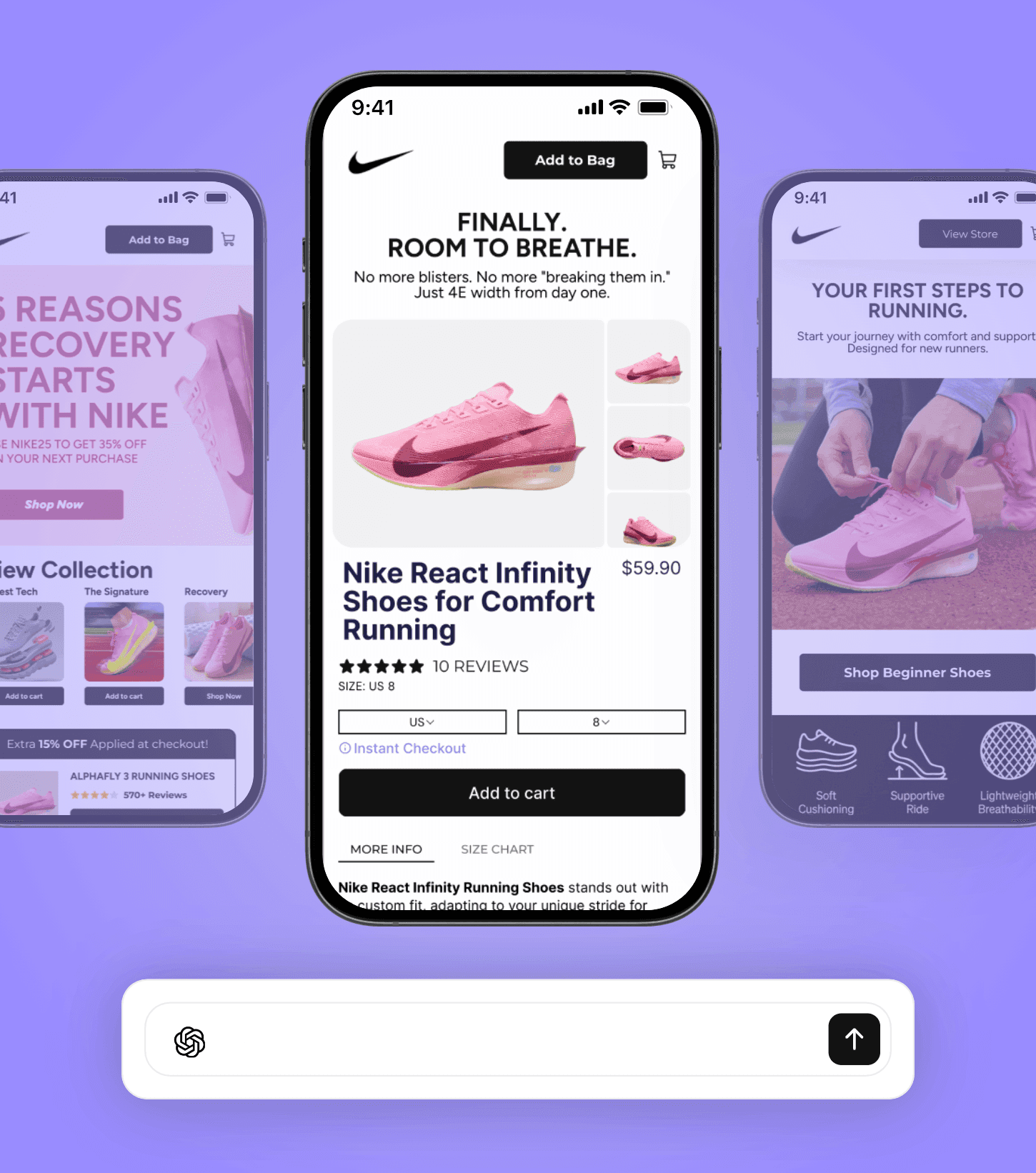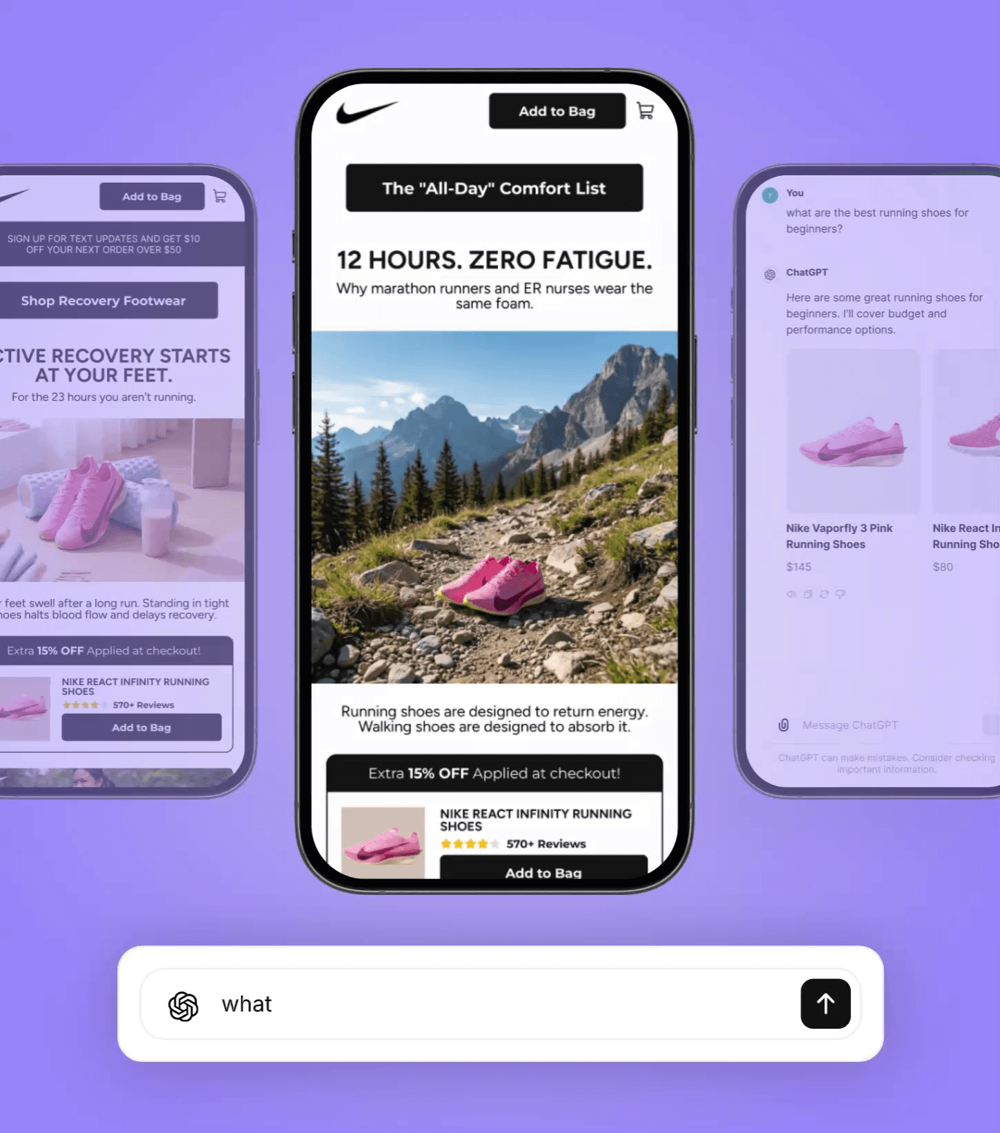 Nudge connects to Shopify, Google Ads, Meta, Klaviyo, and more to enrich AI visibility insights with real product and performance signals.
