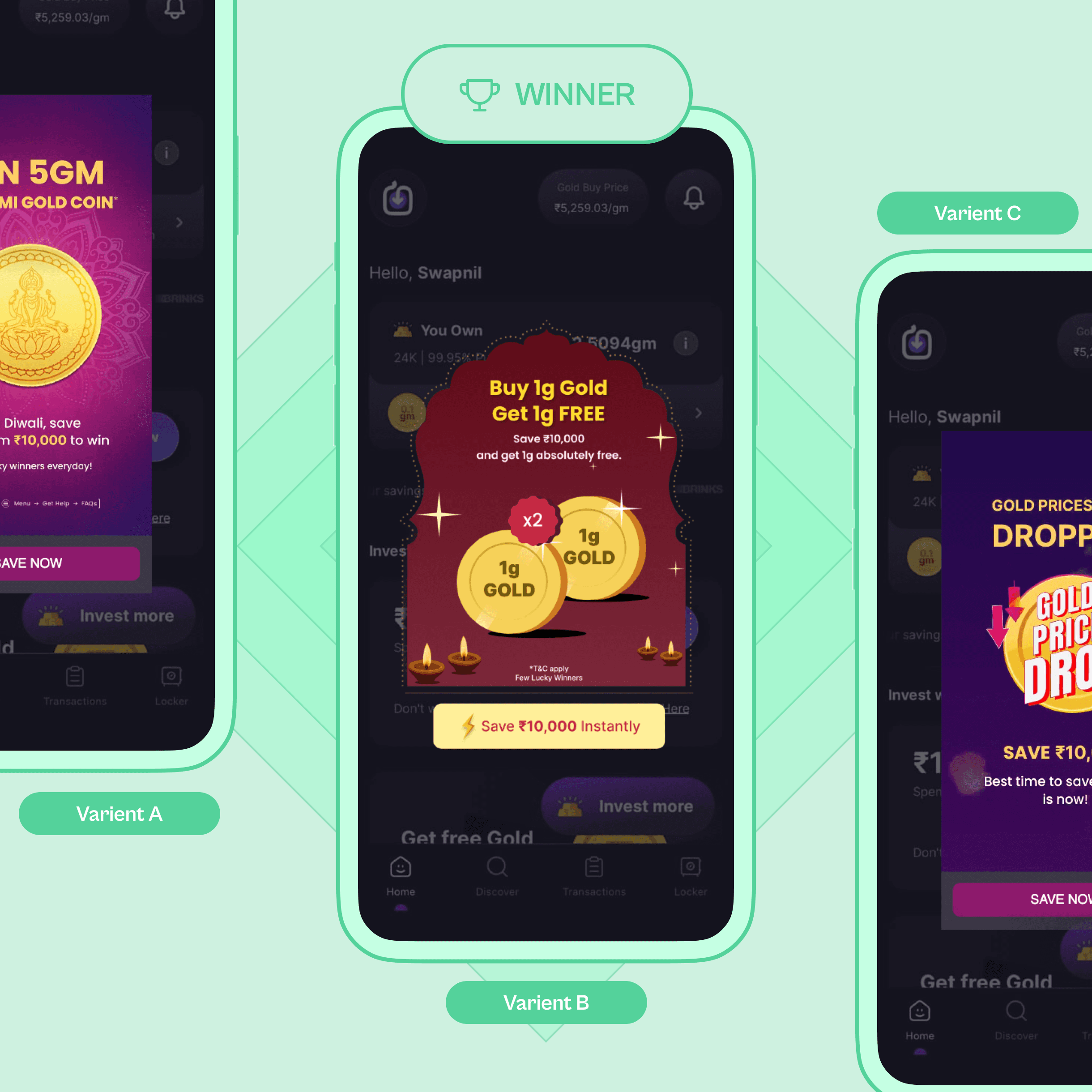 Choose your goal metric & set rollout percentages to experiment with different variations. Real-time analytics in Nudge’s dashboard help you track performance & optimize for your defined goal.