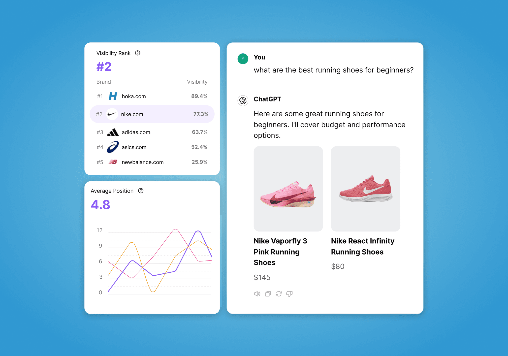 See how often GPT, Perplexity, and Google AI mention your brand and which SKUs get recommended or ignored.