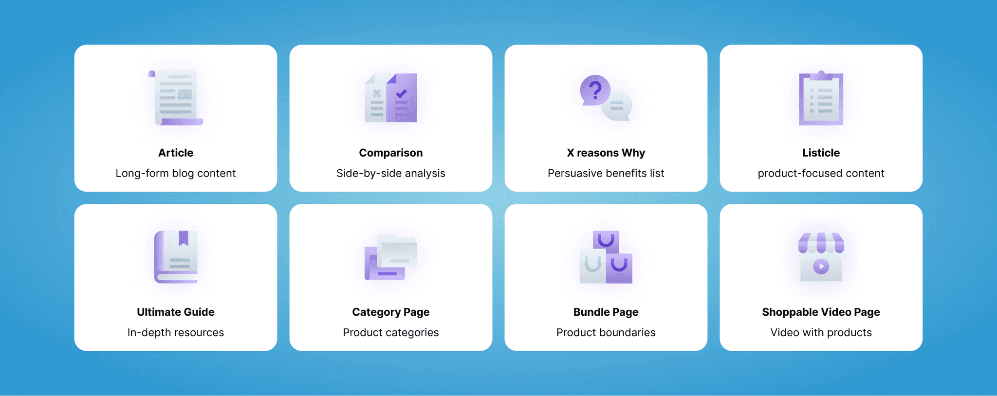 A shoppable AI funnel is prompt-specific - built around the shopper's question, their decision criteria, and the exact SKUs that match their intent. Unlike a generic landing page designed for broad Google traffic, it routes AI visitors to the right product surface with full attributes and frictionless checkout.