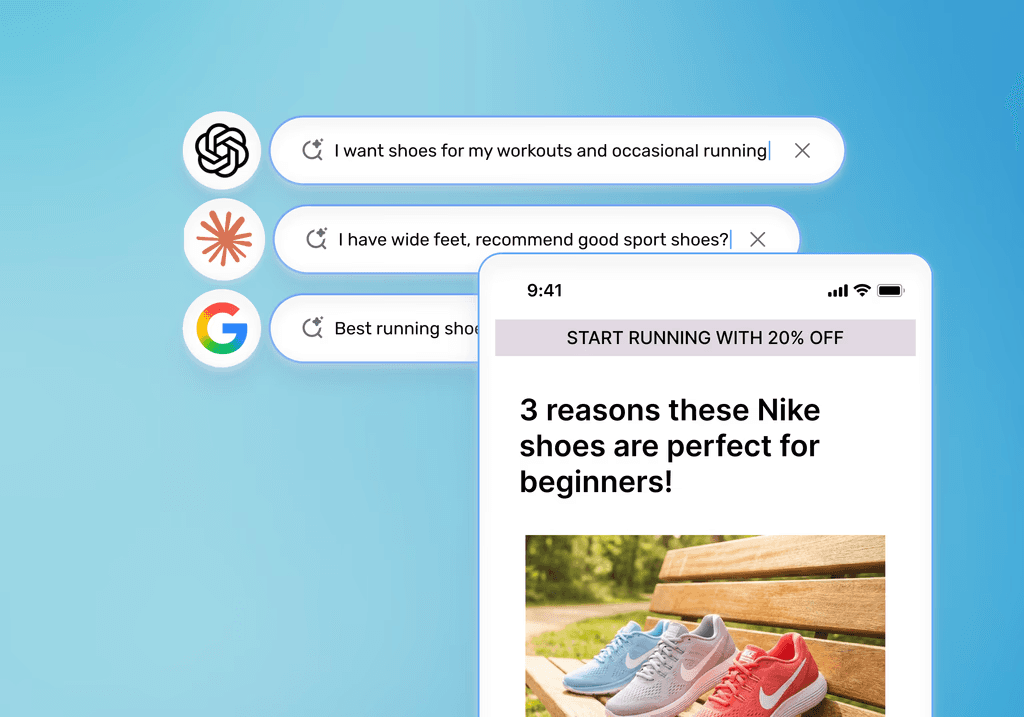 AI discovery is already shaping how shoppers shortlist, compare, and decide. ChatGPT doesn’t just mention the brands that win; they control what happens after that moment of intent. Nudge helps e-commerce and DTC teams turn AI visibility into measurable revenue by connecting discovery, experience, and conversion into one continuous shopper journey. If your PDPs, carts, and checkout aren’t built to capitalize on AI-driven intent, you’re leaving conversion and retention on the table.