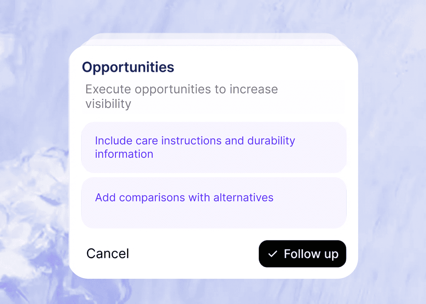 Identify visibility gaps and opportunities across the prompts shoppers rely on, and build shoppable content that gets cited.