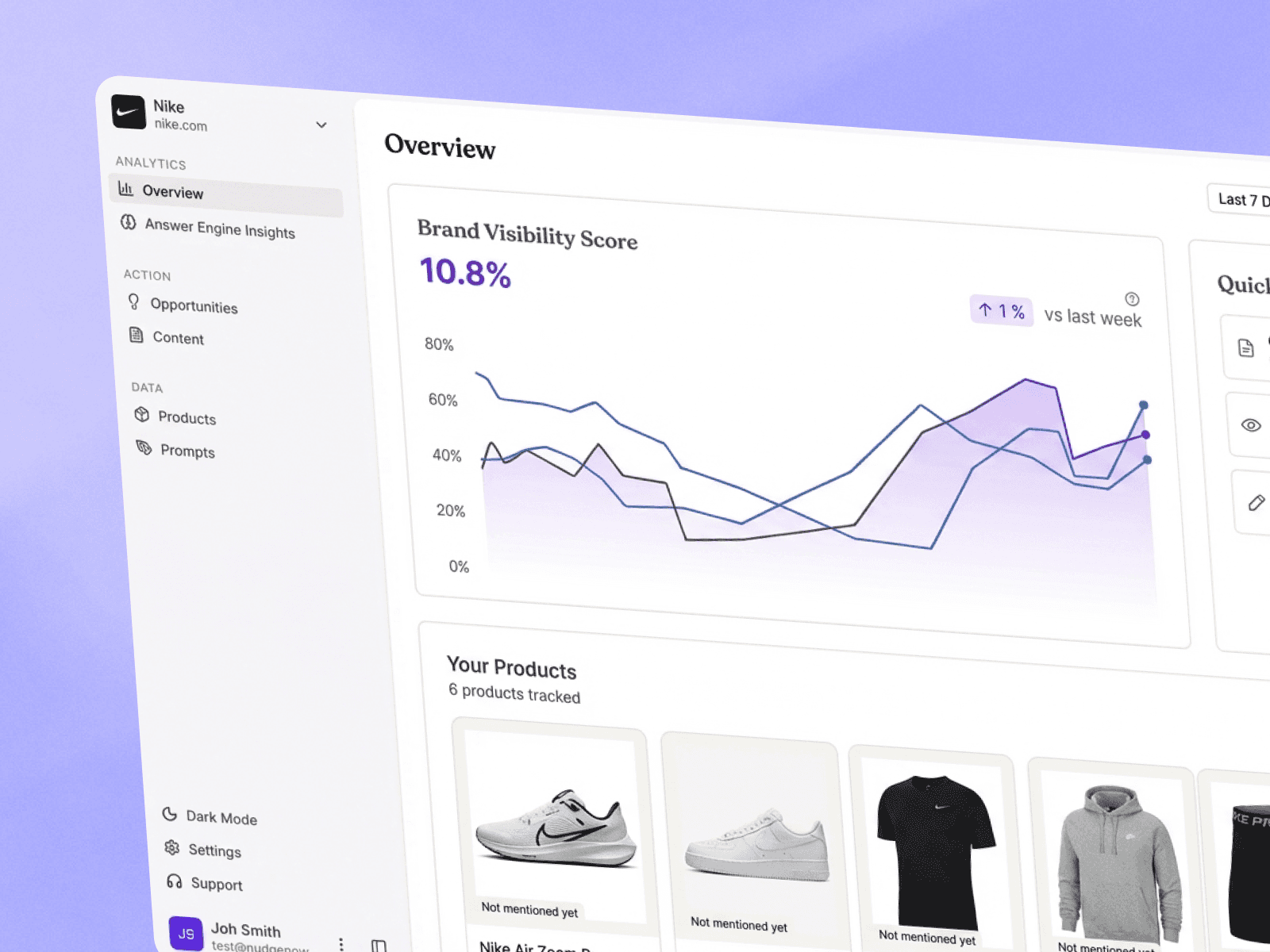 Nudge analyzes AI-generated shopping answers across leading models to see where your brand and products appear, how they’re described, and where opportunities exist to improve visibility.