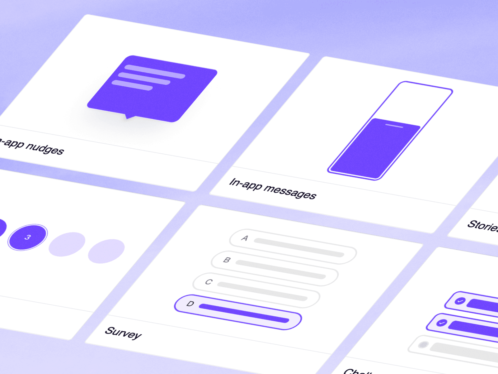 Launch stories, nudges, gamification, rewards, and surveys using overlays, embeds, and full-page experiences.